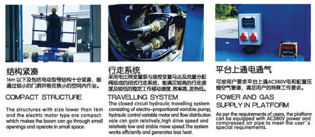 自行曲臂式高空作業平臺動力分為柴油發動機型、直流馬達型,升降臂有二節、三節、升降高度從10米至32米、所有機型全高度行走、曲臂延伸升降、轉盤360旋轉。不同機型配備不同的動力源,以適應室內室外的不同要求。使用柴油機或者蓄電池動力驅動,配合有效的幾何設計和超長的跨越半徑,使該款機型可以有效地避開棘手的障礙物作業。緊湊的工業設計底盤,優異的原地零尾擺旋轉能力,因此低于20米的自行曲臂式升降作業平臺能在有限的空間靈活操作。自行曲臂式升降作業平臺是您維修、安裝、修剪等高空作業的理想工具。